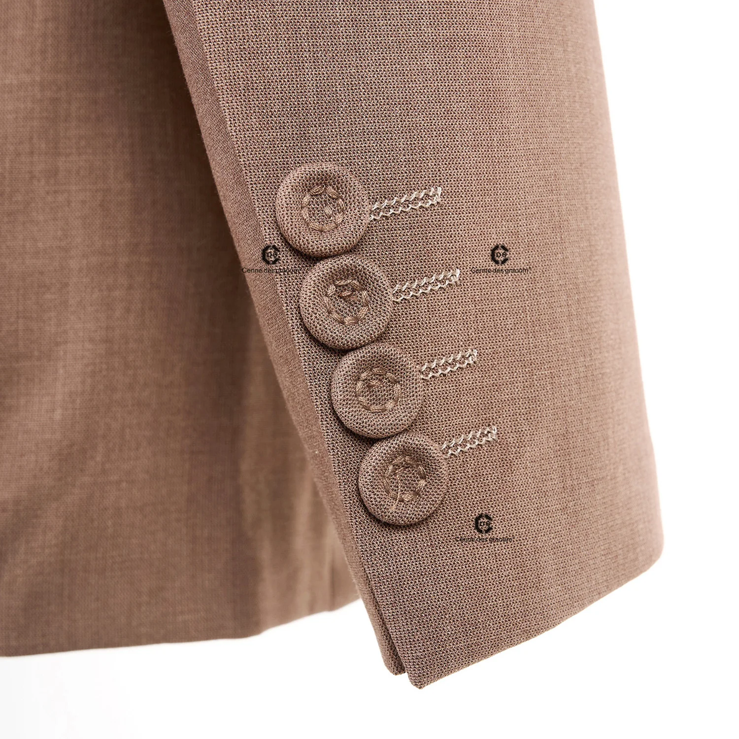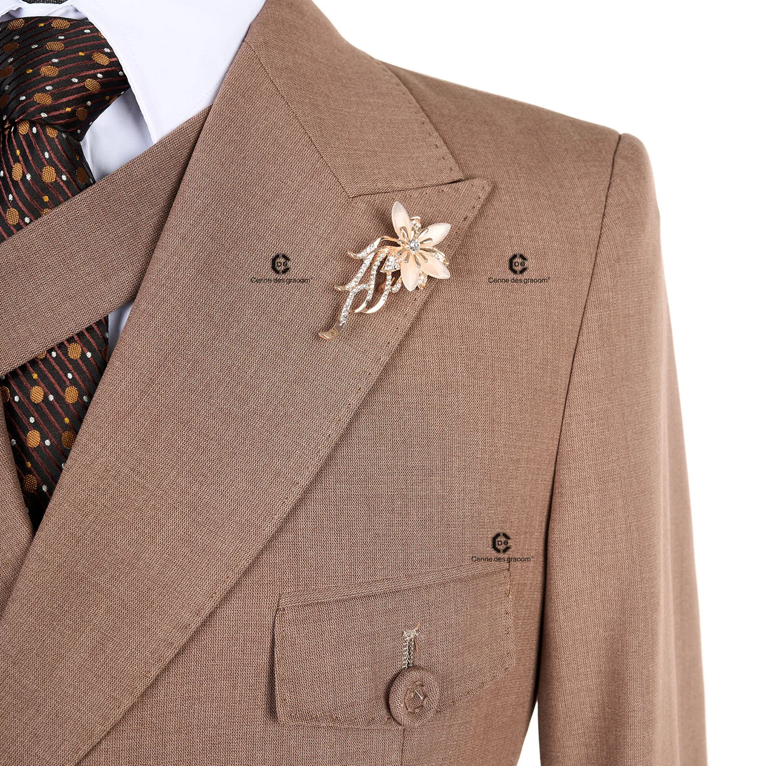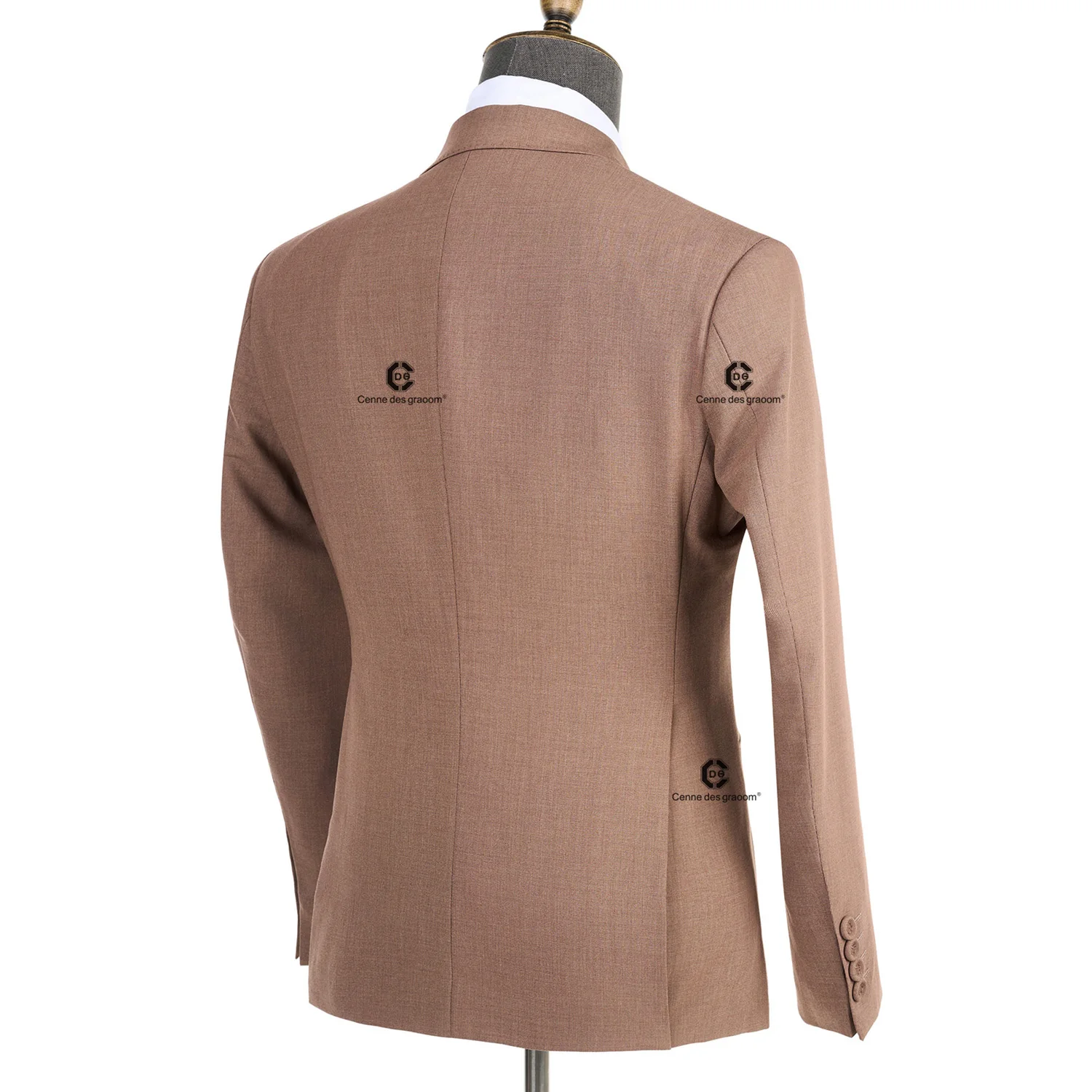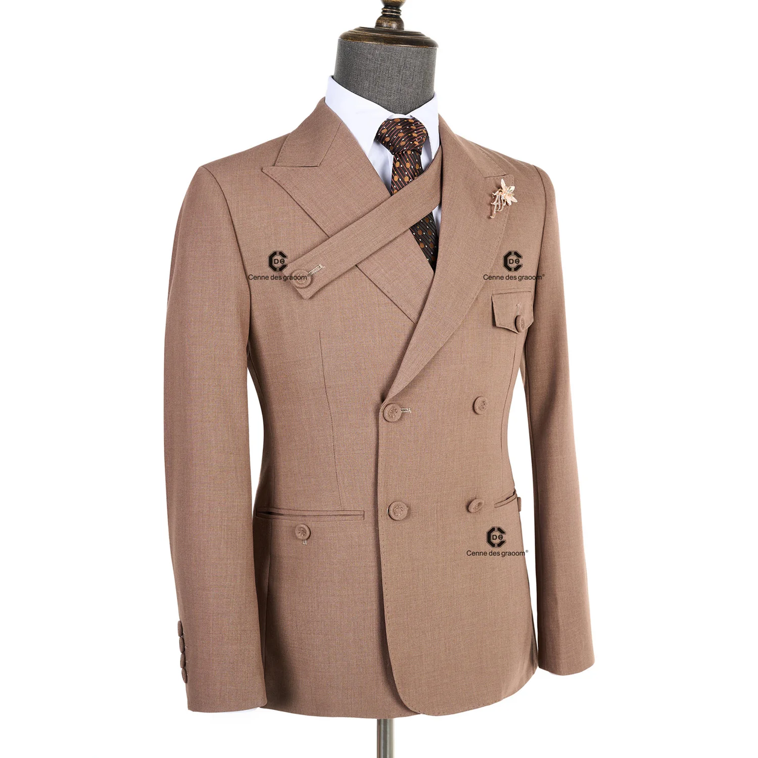Cenne Des Graoom 2026 New Elegant Brown Double Breasted Suits for Men Hand Sewn Buttons 2 Pieces Set High Quality Wedding Party